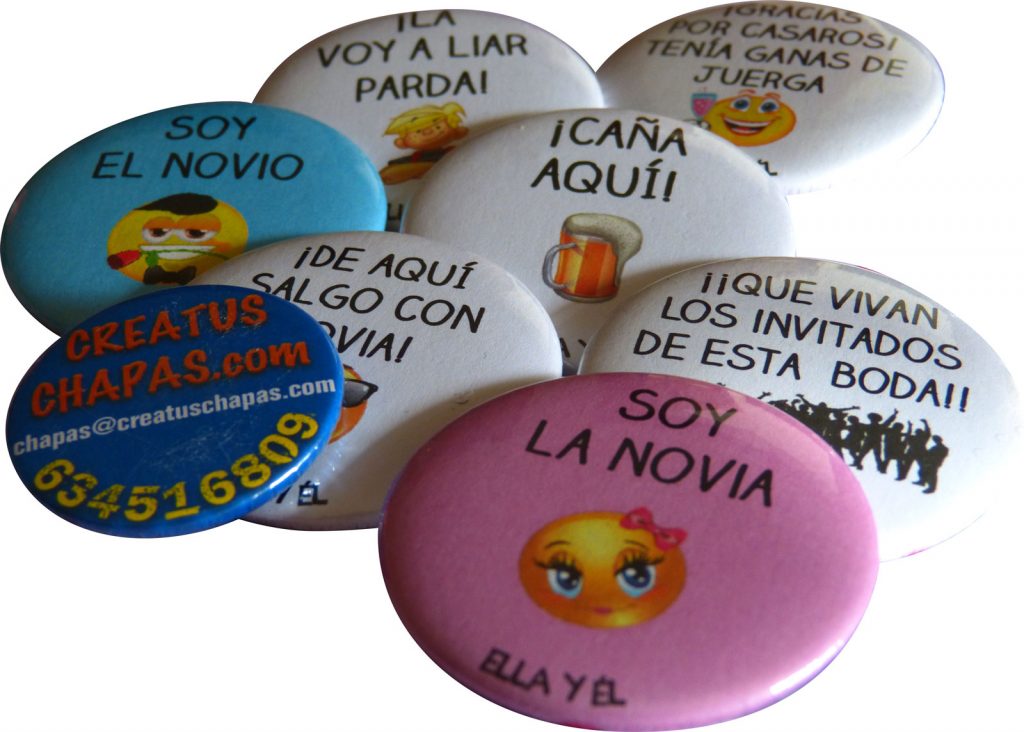 Hoy os traemos una nueva oferta. Un precioso pack de boda, de 100 chapas de 38mm por solo 30€. Podrás personalizarlo con los nombres de los novios y la fecha, y tus invitados tendrán un recuerdo imborrable de este día tan especial, el de tu boda. Haz tu pedido escribiéndonos a chapas@creatuschapas.com