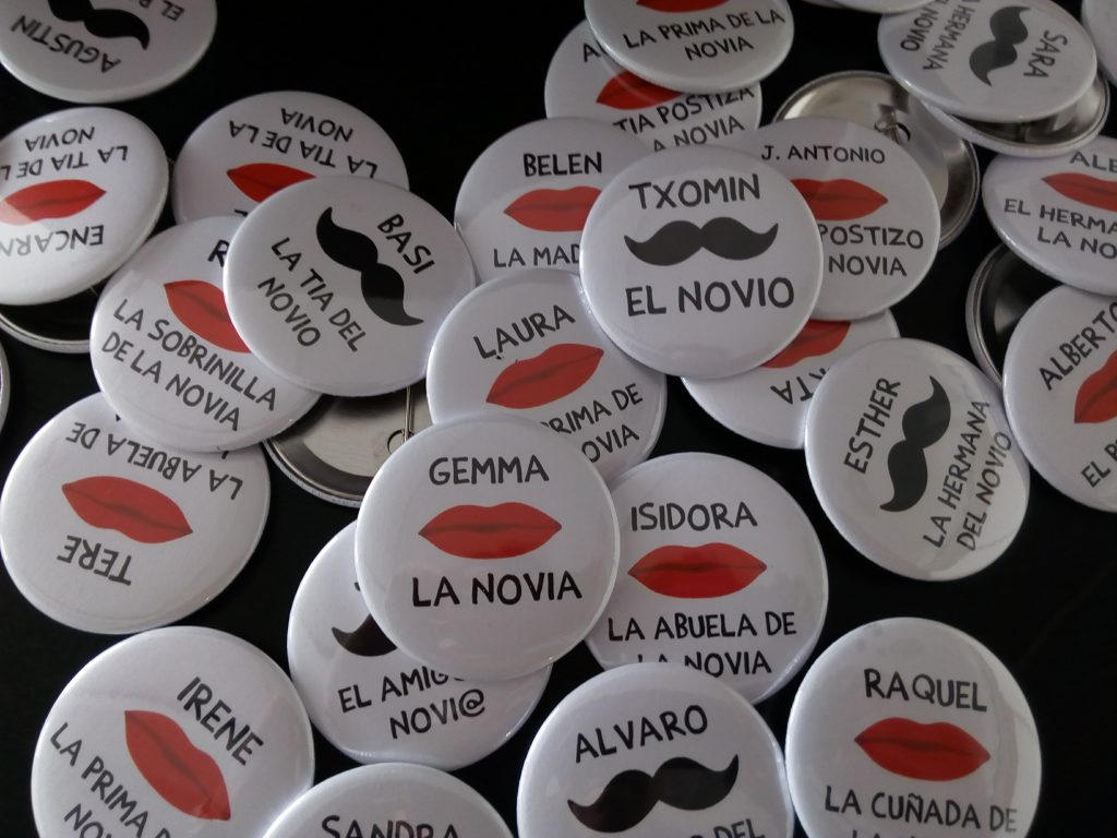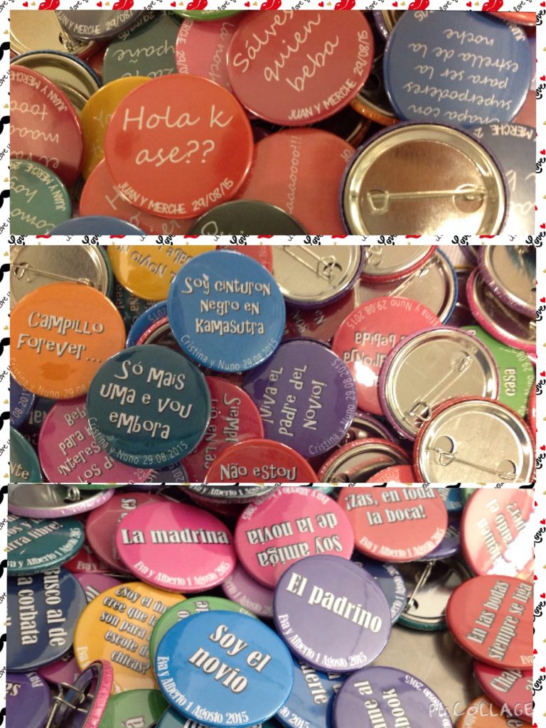 ¿Vienes de parte del novio o de la novia? Si vienes de la novia una chapita con labio, si vienes del novio una chapita con bigote. Los invitados de tu boda se lo pasarán en grande y sabrán perfectamente con quien hablan… a no ser que les de por cambiarse la chapa. 🙂 Chapas […]